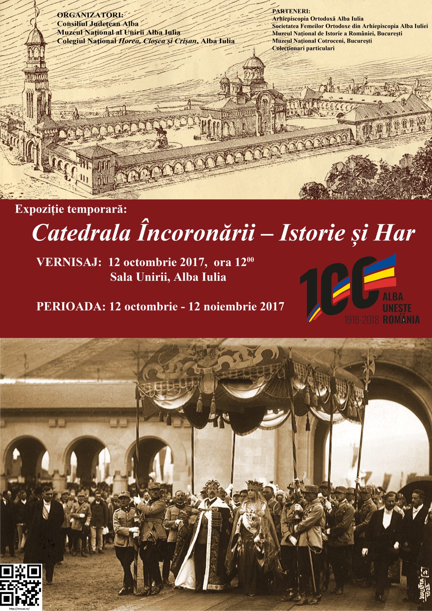Joi, 12 octombrie 2017, de la ora 12, la Sala Unirii din Alba Iulia va fi vernisată expoziția Catedrala Încoronării-Istorie și Har. Evenimentul marchează împlinirea a 95 de ani de la Sfințirea Catedralei Încoronării (8 octombrie 1922) și a 95 de ani de la Încoronarea suveranilor României Mari, Ferdinand și Maria (15 octombrie 1922) la Alba Iulia.Cu această ocazie vor fi expuse mai multe fotografii care surprind principalele etape ale construcției Catedralei Încoronării.Expoziția va fi găzduită de Sala Unirii în perioada 12 octombrie-12 noiembrie 2017.Evenimentul este organizat de Consiliul Județean Alba, Muzeul Național al Unirii Alba Iulia și Colegiul Național Horea, Cloșca și Crișan.