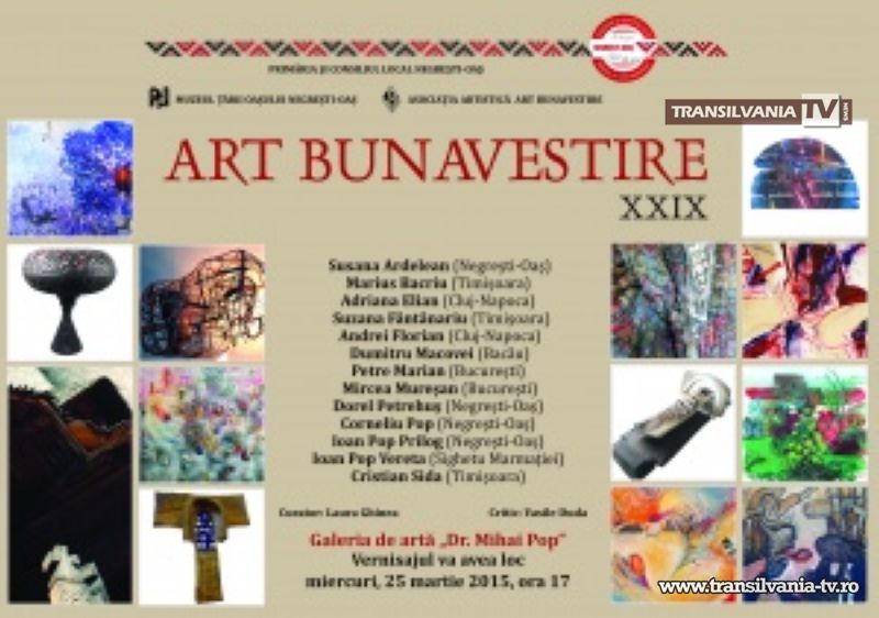 Miercuri, 25 martie 2015, începând cu ora 17, are loc cea de-a XXIX-a ediție a vernisajului expoziţiei anuale de arte vizuale contemporane Art Bunavestire, care se va desfășura la Galeria de Artă „Dr. Mihai Pop” din Negrești-Oaș.