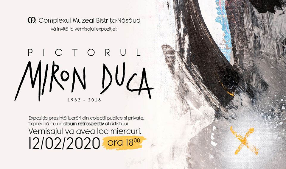 Expoziția ”Pictorul Miron Duca 1952-2018” va fi deschisă publicului în perioada 12 februarie- 20 martie 2020.