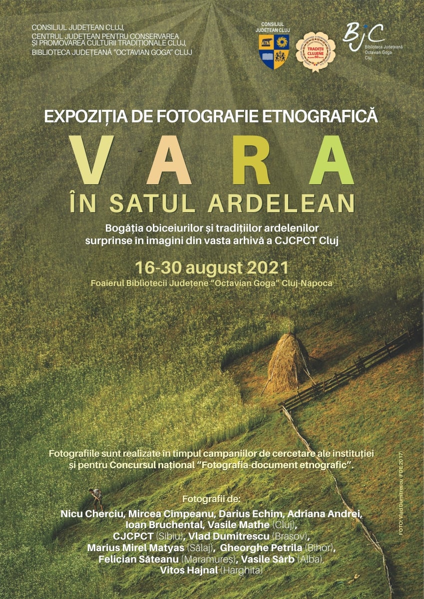 Centrul Județean pentru Conservarea și Promovarea Culturii Tradiționale (CJCPCT) Cluj, instituție de cultură aflată sub autoritatea Consiliului Județean Cluj, invită publicul interesat să descopere, în perioada 16-30 august a.c., expoziția de fotografie etnografică „Vara în satul ardelean”.