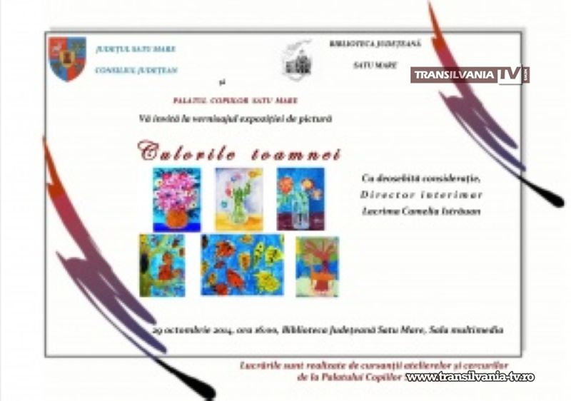 Biblioteca Județeană, sub patronajul Consiliului Județean Satu Mare, în colaborare cu Palatul Copiilor Satu Mare, organizează miercuri, 29 octombrie, vernisajul expoziției de pictură și obiecte de design ambiental, intitulată sugestiv „Culorile toamnei”.