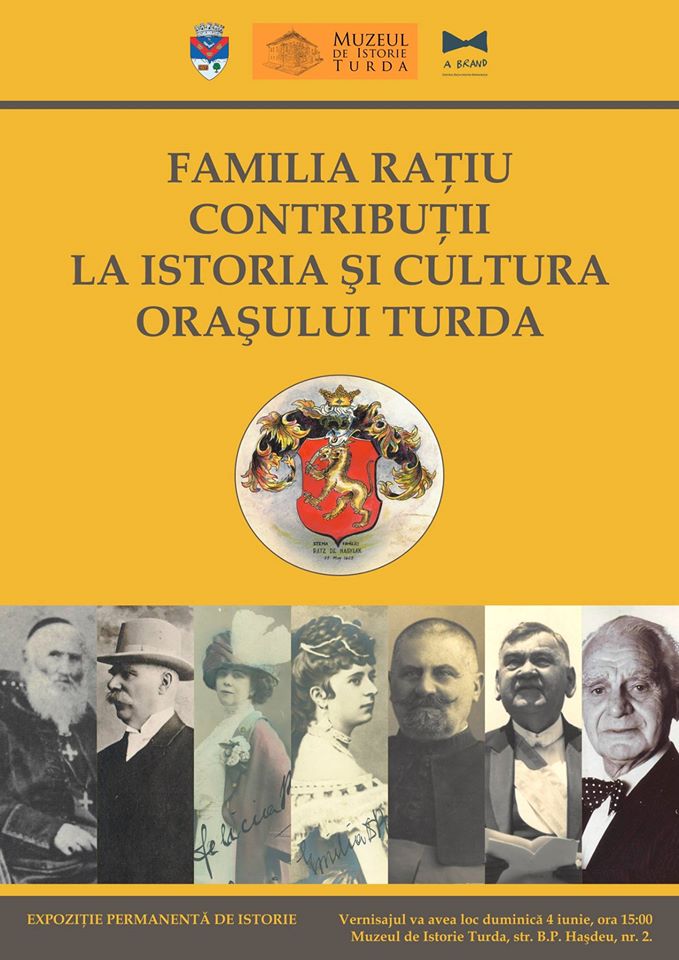 Muzeul de Istorie Turda va vernisa expoziţia permanentă de istorie modernă intitulată: „Familia Rațiu. Contribuții la istoria și cultura orașului Turda”. Vernisajul expoziției, la care vor fi prezenți membri ai familiei și prieteni, va avea loc duminică, 4 iunie 2017, ora 15:00 la sediul muzeului din strada B.P. Hașdeu, nr. 2.