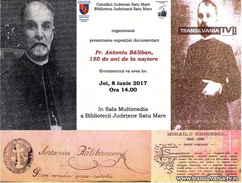 Biblioteca Județeană organizează joi, 8 iunie 2017, cu începere de la ora 14.00, în Sala Multimedia, prezentarea expoziției documentare „Pr. Antoniu Băliban, 150 de ani de la naștere”.