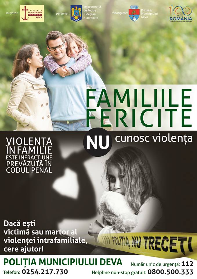 Evenimentul face parte din proiectul social ,,Familiile fericite nu cunosc violența”, inițiat de Asociația ,,Filantropia Ortodoxă” Deva în parteneriat cu Inspectoratul de Poliție Județean Hunedoara și finanțat de Primăria Municipiului Deva.