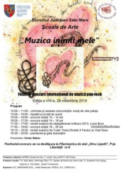 Școala de Arte Satu Mare organizează, vineri 28 noiembrie, la Filarmonica de Stat „Dinu Lipatti”, festivalul concurs internațional de muzică pop-rock „Muzica inimii mele” care ajunge în acest an la cea de-a VIII-a ediție, evenimentul cultural devenind deja o tradiție.