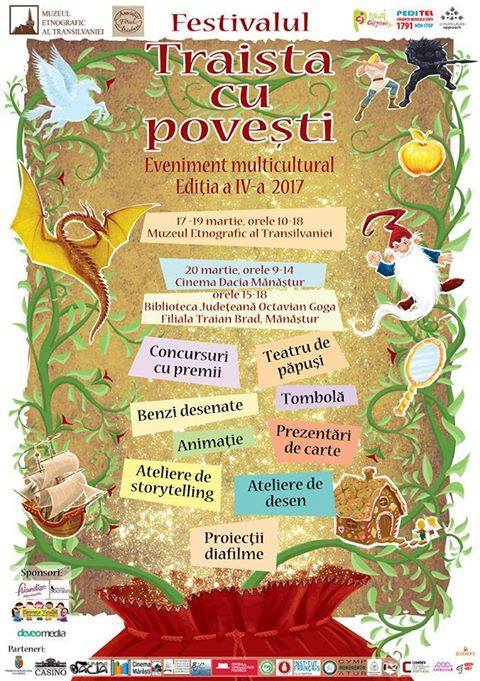 Muzeul Etnografic al Transilvaniei, instituţie de cultură care funcţionează sub autoritatea Consiliului Judeţean Cluj, în parteneriat cu Primăria Cluj-Napoca, Inspectoratul Şcolar Judeţean şi Biblioteca Judeţeană ,,Octavian Goga”, invită copiii de toate vârstele, în perioada 17-19 martie 2017, la cea de-a patra ediţie a Festivalului ,,Traista cu poveşti” – un Știri multicultural ce coincide cu World Storytelling Day şi care este organizat de către Asociaţia Firul Ariadnei, Fundaţia Părinţi din România şi A Multicultural Approach.
