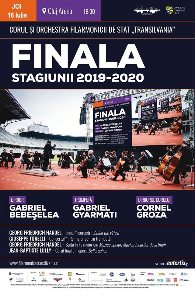 Filarmonica de Stat ,,Transilvania”, instituție de cultură aflată sub autoritatea Consiliului Județean Cluj, își dă întâlnire, din nou pe Cluj Arena, cu publicul interesat, joi, 16 iulie, de la ora 18.00, unde va ,,juca” FINALA stagiunii 2019/2020.