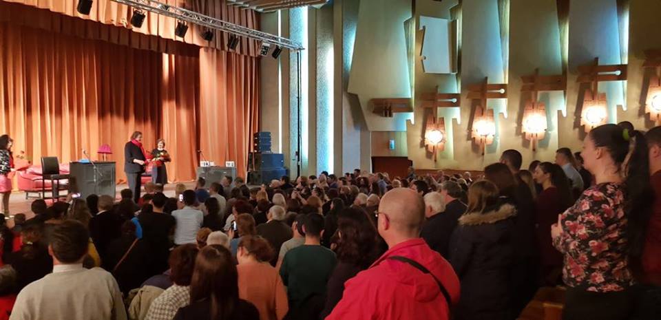 Peste 500 de persoane au asistat, miercuri, 28 martie 2018, la Centrul Cultural ”Drăgan Muntean”, la reprezentația piesei „Străini în noapte”, de Eric Assous, în care Florin Piersic a jucat alături de Medeea Marinescu.