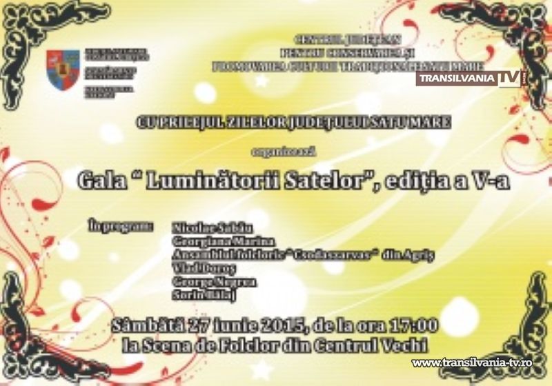 Sâmbătă, 27 iunie de la ora 17,00, la Scena de Folclor din Centrul Vechi, cu ocazia Zilelor Judeţului Satu Mare va avea loc cea de-a V-a ediţie a Galei „Luminătorii Satelor”, eveniment organizat de Centrul Judeţean pentru Conservarea şi Promovarea Culturii Tradiţionale Satu Mare cu sprijinul Consiliului Judeţean.
