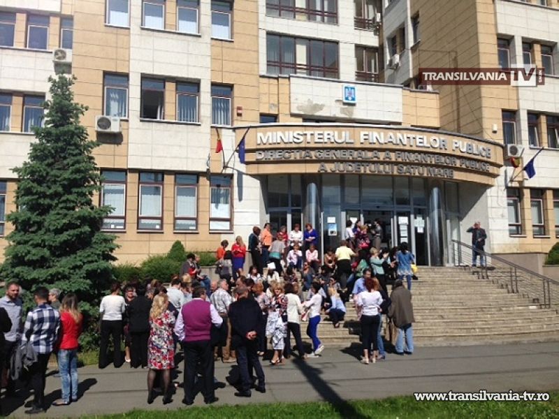 Funcţionarii de la Administraţia Judeţeană a Finanţelor Publice Satu Mare au ieşit luni dimineaţa în faţa instituţiei, organizând o acţiune spontană de protest, nemulţumiţi fiind de noua lege a salarizării.