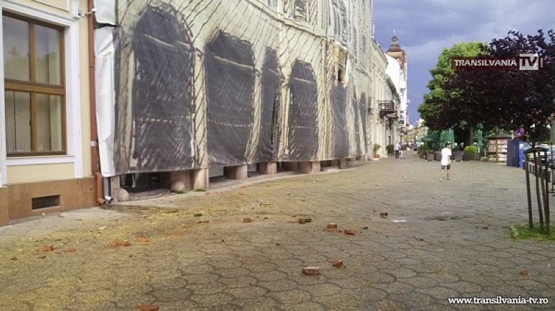 Furtuna de vineri seara a declanșat fenomenul la care visează actualii proprietari ai fostului Hotel Dacia foarte probabil încă de când au pus mâna pe clădirea monument istoric din centrul municipiului Satu Mare: bucăți din zid au căzut pe trotuarul de pe Corso, iar o cărămidă era cât p-aci să lovească un trecător în cap.
