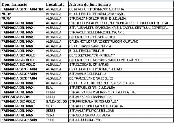 Totodată, tot pentru a preîntâmpina efectele caniculei, la nivelul județului Alba au fost organizate 25 de puncte de hidratare în incinta a tot atâtea farmacii comunitare din județ, astfel: 17 la Alba Iulia, 1 la Blaj, 2 la Cugir, 1 la Galda de Jos, 2 la Sebeș, 1 la Șona și 1 la Teiuș. (vezi lista) Aici, persoanele se pot adăposti de căldură și pot primi apă.