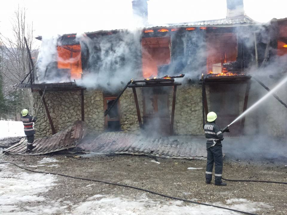 IncendiuL s-a produs la o cabană cu mansardă, suprafața afectată fiind de 200 mp (100 mp pe fiecare nivel).
