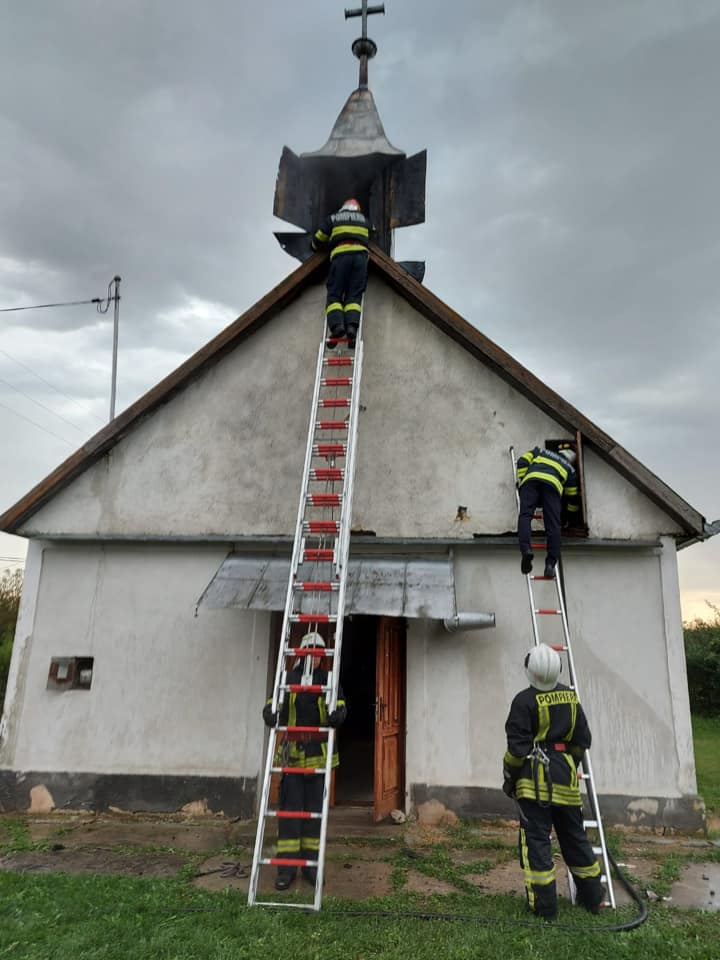 La fața locului s-au deplasat 1 ofițer și 13 subofițeri cu două autospeciale de stingere cu apă și spumă, o autospecială de primă intevenție și comandă, o ambulanță cu echipaj de prim ajutor.Odată ajunși la fața locului, pompierii militari au gasit incendiul care se manifesta cu flacară la niveul turnului bisericii. Forțele de intervenție au reușit protejarea clădirii, astfel că flăcările nu s-au extins la întreaga biserică. La finalizarea intervenției, pompierii au stabilit ca și cauză probabilă de producere a incendiului un traznet.În urma evenimentului nu au fost înregistrate victime, însă au ars: grinzile turnului și s-a deteriorat tabla de la acoperiș.