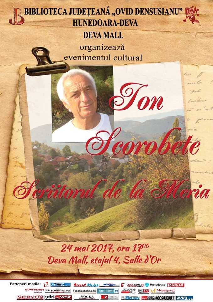 Biblioteca Județeană „Ovid Densusianu” Hunedoara-Deva organizează în ziua de 24 mai 2017, ora 17.00, în incinta Deva Mall, etajul patru, Salle d’Or, un eveniment cultural special dedicat celei de-a 70-a aniversări a poetului, prozatorului și eseistului Ion SCOROBETE. Cu această ocazie, celui sărbătorit i se va oferi biobibliografia alcătuită de Biblioteca Județeană, lucrare care detaliază viața și activitatea scriitorului.