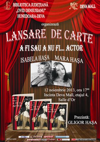 Biblioteca Judeteana „Ovid Densusianu” Hunedoara-Deva organizeaza in ziua de 12 noiembrie 2013, ora 17.00, in incinta Deva Mall, etajul patru, Salle d’Or, lansarea volumului A fi sau a nu fi… actor, semnat de Isabela si Mara Hasa.