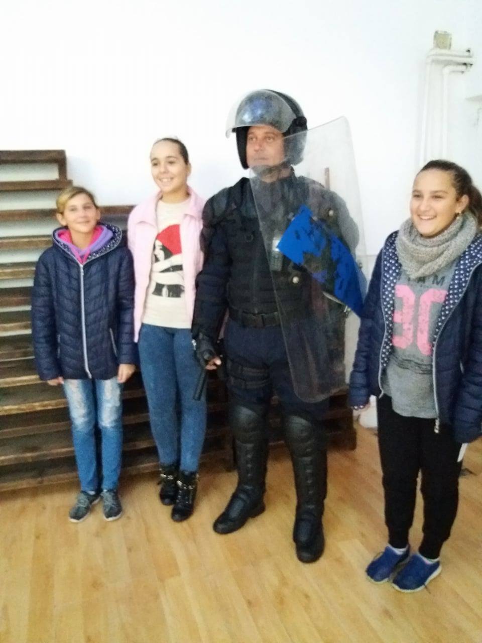 Marţi, 24 octombrie a.c., jandarmii au fost oaspeţii elevilor de gimnaziu din clasele I-VII. Acestora le-au fost prezentate generalităţi privind atribuţiile jandarmilor şi fapte antisociale pe care trebuie să le evite în relaţiile cu prietenii sau colegii. Totodată, aceştia au putut asista la prezentarea tehnicii din dotare.