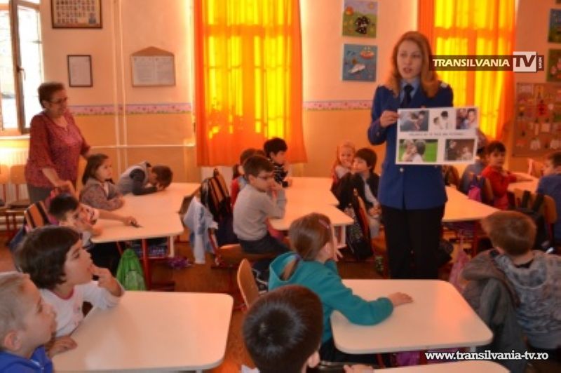 Elevii clasei pregătitoare A împreună cu învățătoarea Lia Stan și elevii clasei I D alături de învățătoarea Ionela Mondici i-au primit pe jandarmi și le-au ascultat recomandările referitoare la normele de conduită atât pe timpul cât sunt la şcoală, cât şi în timpul lor liber, acasă sau pe stradă.