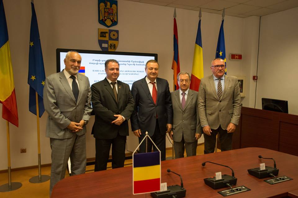 Vicepreședinții Consiliului Județean Cluj, domnii Vakar Istvan și Marius Mînzat, au primit vineri, 30 iunie 2017, vizita unei delegații oficiale a Provinciei Armavir din Armenia, condusă de către domnul Guvernator Ashot Ghahramanyan. Desfășurată la sediul forului administrativ județean, întâlnirea a fost prilejuită de semnarea Înțelegerii de Cooperare dintre județul Cluj și provincia Armavir. Obiectivele principale ale acestui acord bilateral semnat în prezența Ambasadorului Armeniei la București, domnul Hamlet Gasparian, a președintelui Uniunii Armenilor din România, domnul Varujan Vosganian, a reprezentanților Institutului de Armenologie din Cluj-Napoca precum și a altor reprezentanți ai instituțiilor culturale și membri ai comunității armene din județ și din țară vizează derularea de colaborări reciproc-avantajoase în domeniile cultural, economic, educațional, social, sportiv şi turistic. De asemenea, se are în vedere și aplicarea unor forme de cooperare extinse între instituțiile publice, ONG-urile și asociațiile antreprenoriale din cele două regiuni partenere. „Mă bucură faptul că am reușit oficializarea relației de colaborare dintre Cluj și Armavir. Această înfrățire nu este deloc întâmplătoare dacă avem în vedere îndelungata viețuire a comunității armene în acest areal, lunga sa istorie în Armenopolis-Gherla și multitudinea de valori cu care armenii au contribuit la îmbogățirea patrimoniului cultural și spiritual românesc”, a declarat vicepreședintele Vakar Istvan, moderator al întâlnirii de la sediul Consiliului Județean și inițiator al înfrățirii cu provincia Armavir. În cadrul întâlnirii, reprezentanții celor două părți au prezentat, alternativ, profilul economic și investițional al regiunilor de proveniență. În acest context, au fost subliniate atât specificul fiecărei zone, împreună cu atuurile acesteia și s-a încercat identificarea punctelor comune menite să constituie baza viitoarelor proiecte de cooperare bilaterală. În acest sens, alături de colaborarea în plan cultural care se prefigurează deja, părții române i-au fost prezentate o serie de inițiative și experiențe ale Provinciei Armavir și ale Armeniei care ar putea fi preluate. Pornind de la performanțele obținute în domeniu, printre primele sectoare în care s-ar putea transfera expertiza deținută de Armavir se află acela al pisciculturii, cunoscut fiind faptul că, în pofida unor resurse extrem de limitate de apă, această regiune a reușit să dezvolte piscicultura, devenind un însemnat exportator de pește. În același timp, producția de legume, cea de caise, de struguri, vinuri și distilate din vin reprezintă domenii în care Armenia și Provincia Armavir au reușit să performeze. În plan educațional, un interes aparte a trezit atenția acordată de Armenia studierii șahului în mod generalizat, încă din clasa a II-a, acesta contribuind esențial la dezvoltarea intelectuală a tinerilor. Reprezentanții provinciei Armavir și-au exprimat cu această ocazie disponibilitatea de a pune la dispoziția părții române experții de care dispune în domeniul sportului minții, în cazul în care se va dori derularea de colaborări în acest sens. „Am convingerea fermă că Înțelegerea semnată astăzi va produce, în viitor, efecte pozitive pentru ambele părți și va facilita transmiterea de bune practici și idei de afaceri. Armavir este o Provincie aflată în plină expansiune, cu o industrie puternică și cu un sector agricol extrem de bine dezvoltat. Profilul economic al celor două regiuni partenere are multe puncte comune, motiv pentru care viitoarele proiecte bilaterale au toate șansele să se concretizeze”, a declarat domnul Marius Mînzat, vicepreședintele Consiliului Județean Cluj. Aflată într-o primă vizită în județul Cluj, delegației armene i-a fost pregătit un program de vizite al cărui scop este acela de a descoperi cât mai multe din atracțiile zonei. Acesta cuprinde vizitarea centrului istoric al municipiului Cluj-Napoca și a unor obiective reprezentative precum Salina Turda, Catedrala Armeano-Catolică din Gherla, Mănăstirea de la Nicula, stufărișurile de la Sic, etc. Totodată, în program au fost incluse și întâlniri cu reprezentanții Uniunii Armenilor din județul Cluj și ai Institutului de Armenologie din Cluj-Napoca. De asemenea, membrii delegației armene au programate întâlniri cu conducerea Primăriei municipiului Gherla, context în care oficialii armeni vor asista sâmbătă, la slujba religioasă oficiată la Catedrala armenească din localitate cu prilejul sărbătoririi Sfântului Grigore Luminătorul, cunoscut drept Apostolul Armeniei.