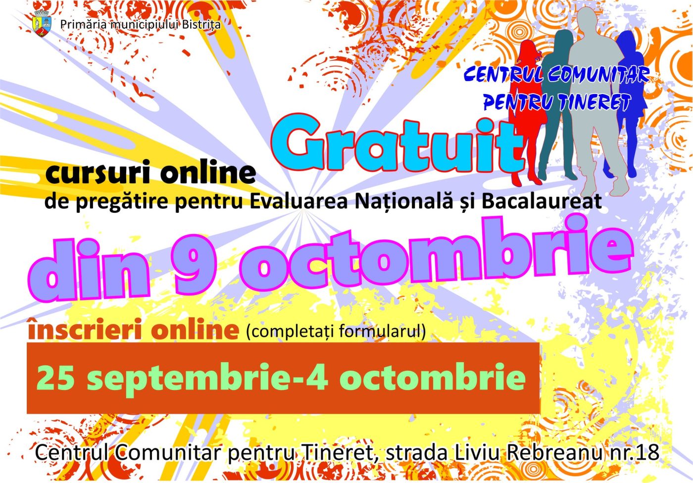În intervalul 25 septembrie – 4 octombrie 2023 se pot face înscrieri la cursurile organizate la Centrul Comunitar pentru Tineret Bistrița, str. Liviu Rebreanu, nr. 18.