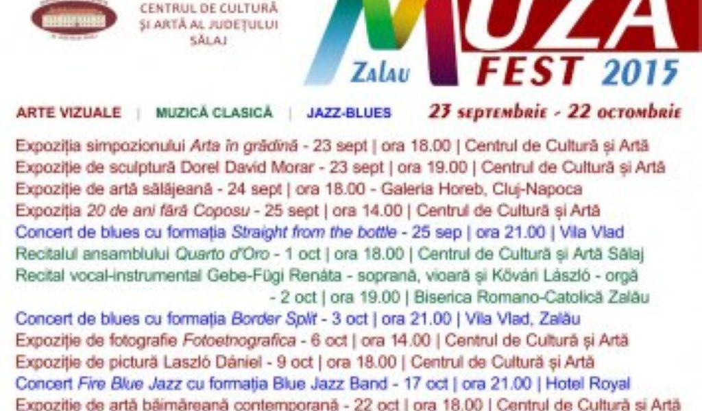 Ajuns la cea de-a VII-a ediţie, maratonul de evenimente culturale – „Festivalul Artelor – Muza Fest” este organizat de Centrul de Cultură şi Artă al judeţului Sălaj, sub egida Consiliului Juudeţean Sălaj. “O experienţă de neuitat pentru iubitorii artelor, a muzicii de calitate. Publicul zălăuan, cât şi cel sălăjean, va avea parte de şase expoziţii de artă, o expoziţie cu tematică istorică, trei recitaluri de muzică clasică şi trei concerte de jazz – blues”, susţin organizatorii.