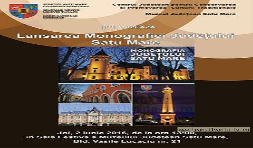 Joi, 2 iunie, Centrul Județean pentru Conservarea și Promovarea Culturii Tradiționale, în colaborare cu Muzeul Județean, cu sprijinul Consiliului Județean organizează Lansarea Monografiei Județului Satu Mare. Evenimentul va avea loc începând cu ora 13:00, în sala festivă a Muzeului Județean Satu Mare.
