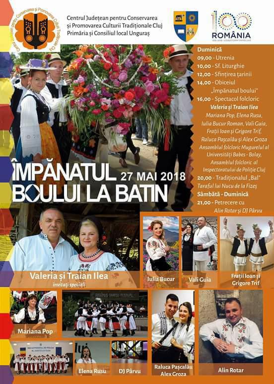 Manifestarea de la Batin, organizată de C.J.C.P.C.T. Cluj, împreună cu Primăria și Consiliul Local Unguraș, va debuta după slujba de la biserică. Preotul, împreună cu credincioșii, vor merge într-un capăt al satului, unde va fi oficiată o slujbă de sfințire a holdelor. Apoi, de la ora 14.00, se va desfășura obiceiul propriu-zis, când un bou va fi împodobit cu flori și spice de grâu. După acest moment, alaiul format din fete și feciori va purta „boul înstruţat” pe ulițele satului. Acest ceremonial se organiza cu scopul de a aduce noroc, belşug şi sănătate oamenilor şi pământului.