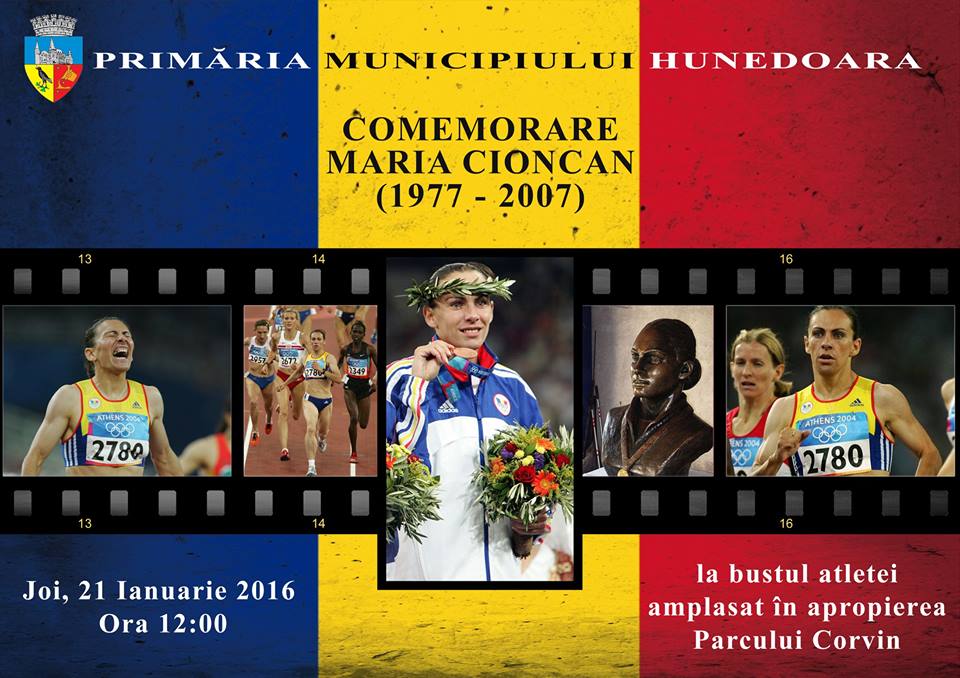 Maria Cioncan, o atletă de excepție pentru municipiul Hunedoara, va fi comemorată joi, 21 ianuarie 2016, la bustul acesteia situat lângă intrarea în Parcul Corvin (lângă BCR), la nouă ani de la dispariția acesteia dintre noi.