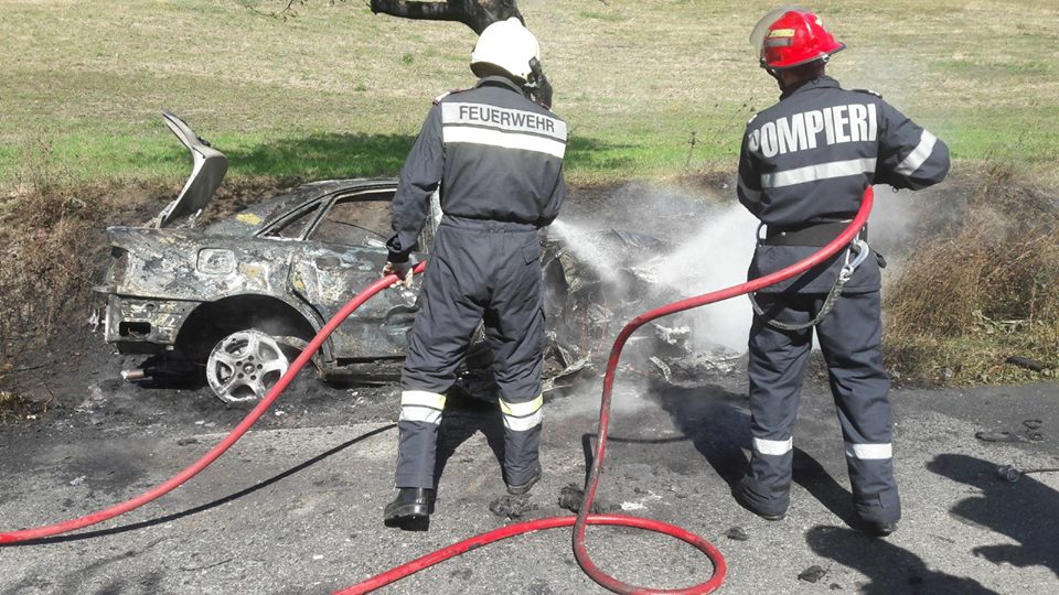 Pompierii ajunşi la locul solicitarii au lichidat incendiul rapid. Cealaltă persoană implicată in accident, conducator auto, a refuzat transportul la spital.