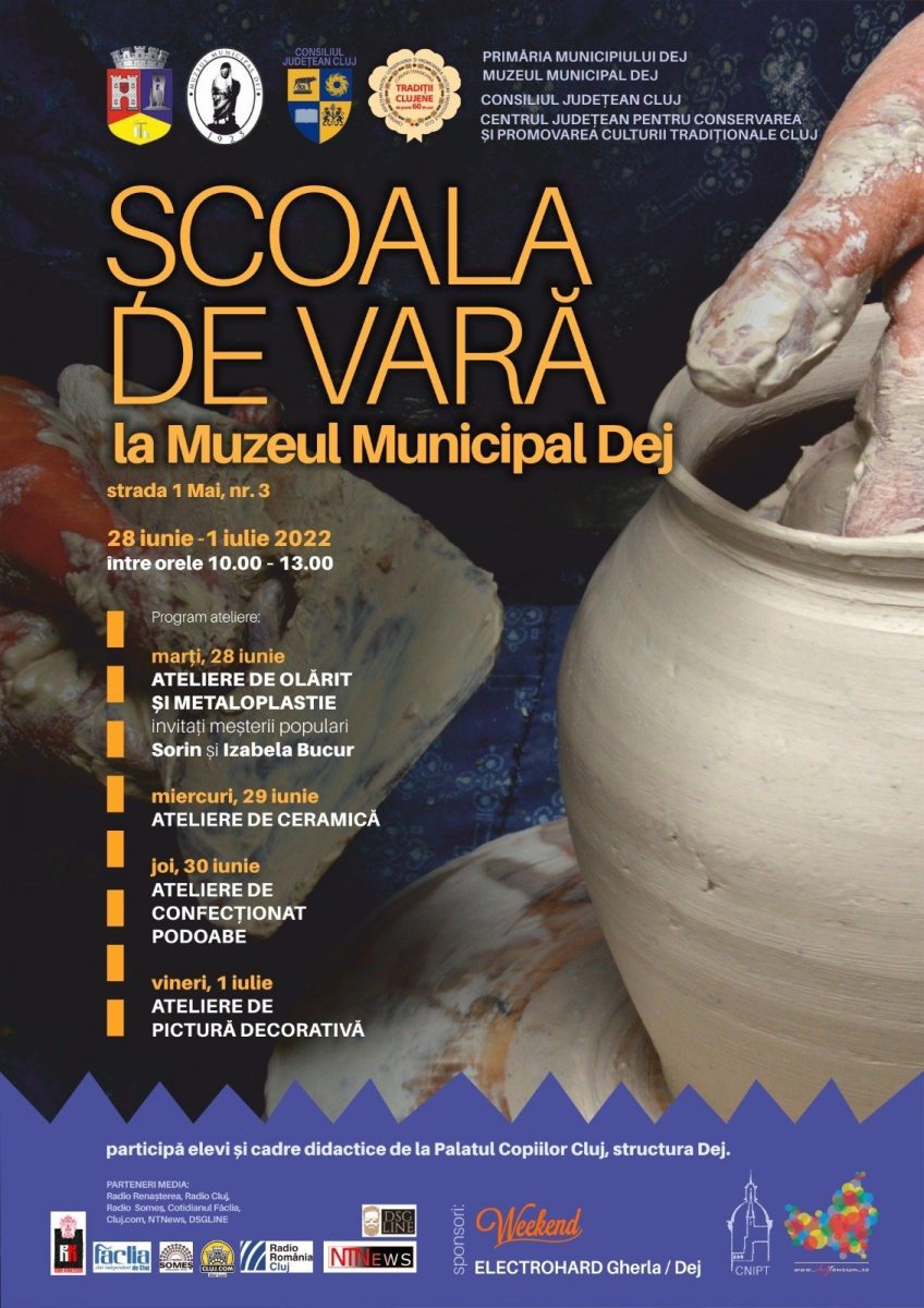 În cadrul Școlii de Vară, organizată de Centrul Județean pentru Conservarea și Promovarea Culturii Tradiționale (CJCPCT) Cluj, instituție de cultură din subordinea Consiliului Județean Cluj, în parteneriat cu Muzeul Municipal Dej și Clubul Copiilor Dej, se desfășoară ateliere zilnice, care au ca activitate principală familiarizarea tinerei generații cu meșteșugurile tradiționale, precum: olărit, metaloplastie, ceramică, pictură și confecționat podoabe.