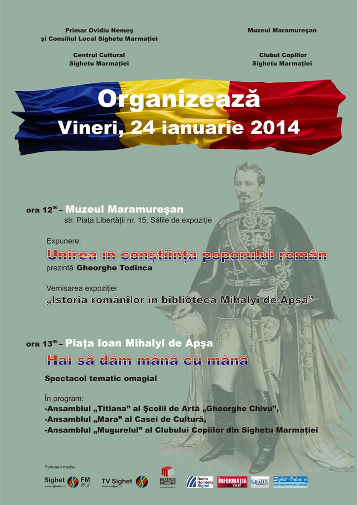 Consiliul Local Sighetu Marmaţiei, Primarul Gheorghe Ovidiu Nemeş în colaborare cu Muzeul Maramureşan, Centrul Cultural Sighetu Marmaţiei şi Clubul Elevilor, organizează vineri 24 ianuarie, mai multe acțiuni menite să aniverseze “Mica Unire”.