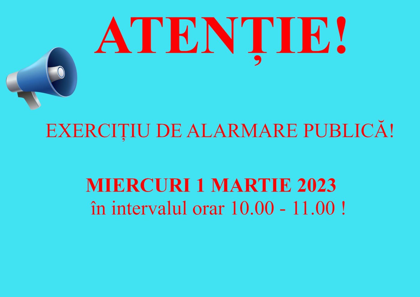 Prin modul de acționare a mijloacelor tehnice de alarmare există posibilitatea de a crea disconfort în spațiul public, motiv pentru care asigurăm cetățenii că astfel de exerciții periodice sunt necesare și benefice. Aceste exerciții sunt destinate verificării funcționării mijloacelor de alarmare a populației, în scopul centralizării datelor privind starea de operativitate a echipamentelor de înștiințare, avertizare și alarmare, precum și pentru pregătirea continuă a autorităților administrației publice locale.