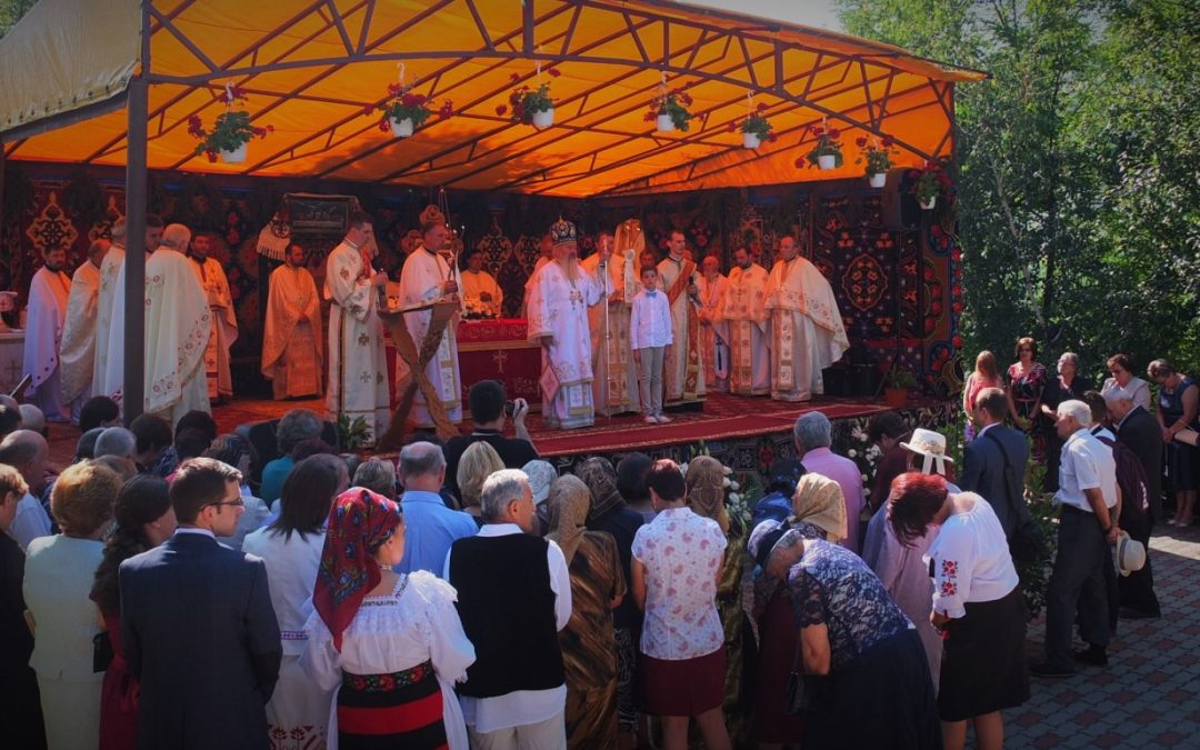 Înaltpreasfințitul Părinte Andrei a rostit rugăciunile specifice binecuvântării locașului de cult iar apoi a oficiat Sfânta Liturghie, începând cu ora 10,00 pe o scenă amplasată în curtea bisericii.