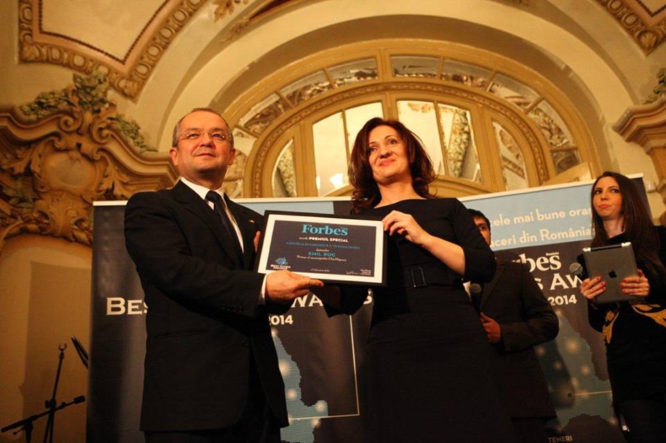 Premiul ”Capitala economica a Transilvaniei” a fost acordat municipiului Cluj-Napoca in cadrul Galei “Forbes Romania – Best Cities for Business 2014”. Premiul a fost acordat pentru performanta economica si a fost inmanat primarului Emil Boc.