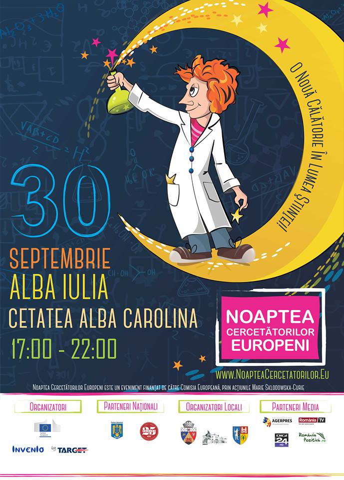 Vineri, 30 septembrie 2016, la Muzeul Național al Unirii Alba Iulia va avea loc „Noaptea Cercetătorilor”. Evenimentul desfășurat anual în peste 300 de orașe din Europa, împlinește anul acesta 11 ani de la prima ediția europeană. În cadrul manifestării, muzeul albaiulian propune mai multe activități care se vor desfășura conform programului de mai jos. Tot cu această ocazie, de la ora 18.00, în fața Porții a IV-a A Cetății Alba Carolina, va avea loc și reprezentația Gărzii Apulum. Evenimentul este organizat de Consiliul Județean Alba, Primăria Municipiului Alba Iulia, Asociația Invenio și Muzeul Național al Unirii Alba Iulia.ProgramOrele 17:00-22.00Cercetarea criminalistică și profesia de polițist. Locație: str. Muzeului (între Muzeu și Sala Unirii).MEȘTEȘUGURI TRADIȚIONALE:- Atelier de icoane- Atelier de cusături tradiționaleLocație: Sala Unirii.Orele 18:00-19.00 Spectacol de reconstituire istorică / Garda Apulum.Locație: Poarta IV a Cetății Alba Carolina.Orele 19:00-20.00 Spectacol de teatru: Mare Nostrum / trupa Skepsis.Locație: str. MuzeuluiOrele 20:00-22:00ATELIERE ANTICE:- Officina scriptoria- Monetărie romană și dacică- Prelucrare os- Școala micilor gladiatori- Confecționare încălțăminte antică- Plante medicinaleLocație: Strada Muzeului.