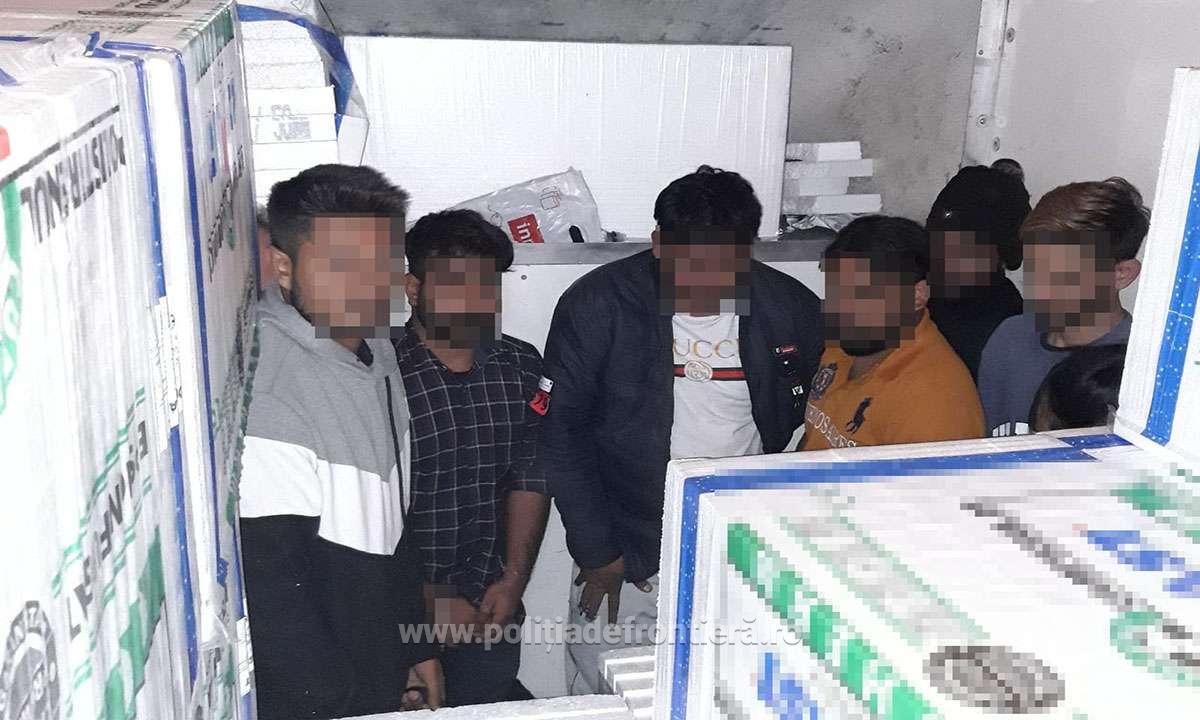 Poliţiştii de frontieră sătmăreni au depistat nouă cetăţeni indieni care au încercat să iasă ilegal din România, ascunşi în compartimentul de marfă al unei autoutilitare. Şoferul este cercetat acum pentru trafic de migranţi şi va fi prezentat instanţei cu propunere de arestare preventivă.