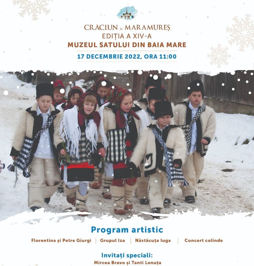 Cea de-a XIV-a ediție a evenimentului „Crăciun în Maramureș” este organizată de Consiliul Județean Maramureș, în parteneriat cu Ansamblul Folcloric Național „Transilvania”, Centrul Județean pentru Conservarea și Promovarea Culturii Tradiționale „Liviu Borlan” Maramureș, Muzeul Județean de Etnografie și Artă Populară Maramureș și Organizația de Management al Destinației Județene Maramureș. Deschiderea oficială a manifestărilor va avea loc la ora 11:00, accesul publicului în incinta Muzeului Satului fiind permis începând cu ora 10:00.