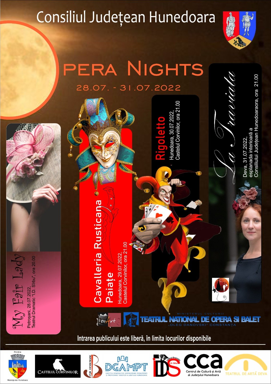 Consiliul Județean Hunedoara organizează, în perioada 28-31 iulie 2022, Festivalul Internațional de Operă „Opera Nights”, ediția 2022.