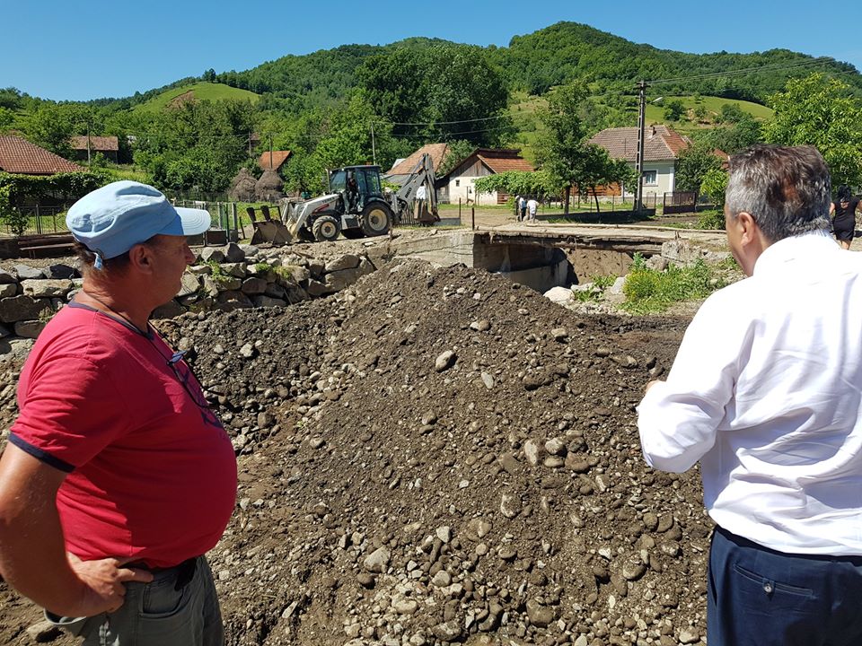Prefectul județului Hunedoara, Vasilică Potecă, a verificat astăzi situația lucrărilor hidrotehnice și activitatea comisiilor de evaluare a pagubelor din comuna Vața de Jos, grav afectată de inundațiile care au avut loc în noaptea de 18 spre 19 iunie 2020.