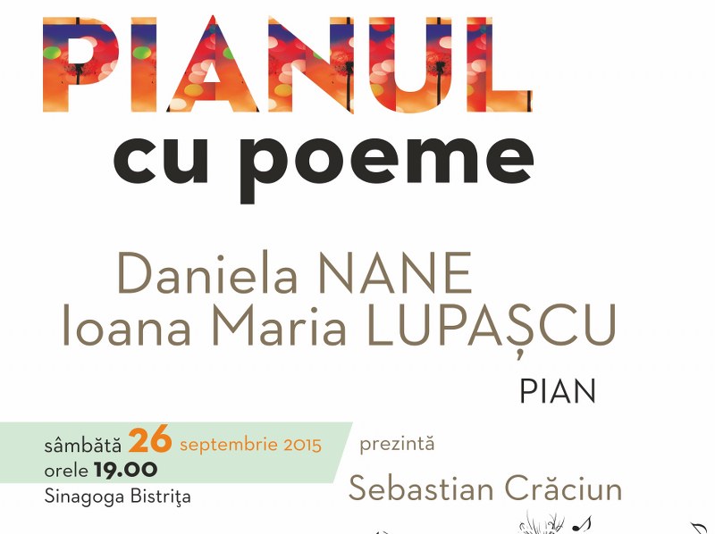 La invitația Societaţii de Concerte Bistriţa, sâmbătă 26 septembrie 2015, ora 19,00, la Sinagoga din Bistriţa, actrița Daniela Nane şi pianista Ioana Maria Lupașcu susţin un spectacol eveniment de poezie şi muzică.
