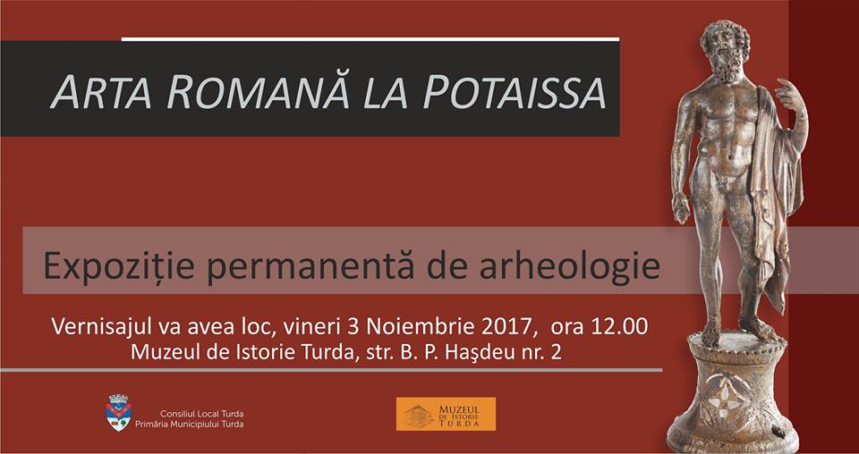 Muzeul de Istorie Turda anunţă inaugurarea expoziției de arheologie Arta romană la Potaissa. Vernisajul va avea loc vineri, 3 noiembrie 2017, ora 12.00 cu prilejul celei de a V-a ediții a Colocviului Național de Arheologie, organizat de Muzeul de Istorie Turda în colaborare cu Universitatea „Babeş-Bolyai” Cluj-Napoca.