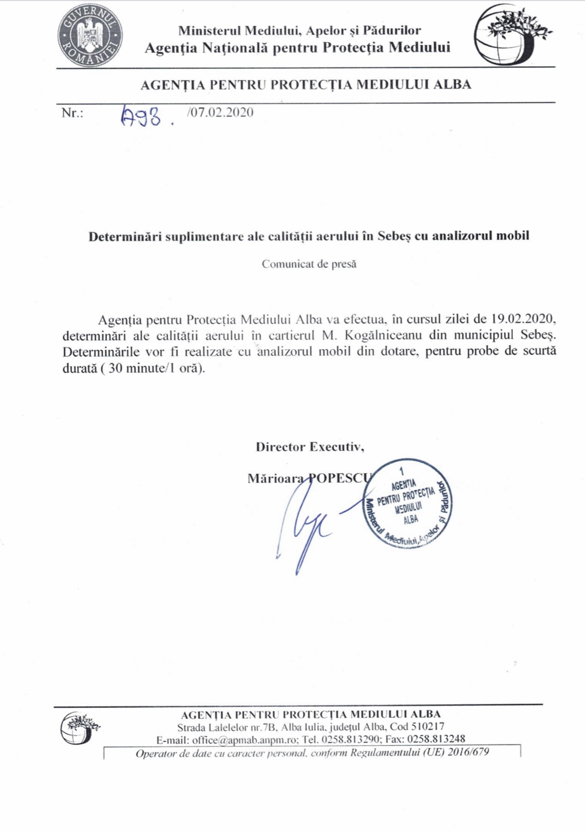 Scandal cu iz de poluare la Sebes! Mai multe informatii au aparut marti (17.02.2020), in mediul public, potrivit carora, poluarea a depasit toate limitele si a crescut nivelul de formaldehida. Potrivit sistemului de masurare a Primariei Municipiului Sebesului, indicatorii maximi au fost depasiti cu foarte putin. Specialisti de la Agentia pentru Protectia Mediului Alba, contrazic insa rezultatele si spun ca marti nu a fost nicio poluare in Sebes, indicatorii fiind la nivelul minim. Statia de monitorizare a aerului, apartinand Primariei Sebes, amplasata in cartierul Mihail Kogalniceanu, a inregistrat luni depasiri ale valorilor monitorizate. Rezultatele au fost postate de catre Primăria Sebeş, pe site-ul propriu. Conform acestor indicatori, indicele general este ”foarte rau”, iar formaldehida a depăşit cu foarte putin limita maximă admisă: 0,013 mg/mc, faţă de 0,012 mg/mc.Reprezentantii Agentiei pentru Protectia Mediului Alba insa, contrazic total, indicatorii constatati de laboratorul Primariei din Sebes. Specialistii spun ca ei recolteaza zilnic, manual, probe de mediu din zona si le analizeaza in laboratoarele proprii, dar nimic nu indica o astfel de depasire, ci din contra. Doamna Marioara Popescu, director al APM Alba, ne-a declarat ca luni, concentratia masurata a fost de 0,001, la nivel de miime, limita maxima admisa, conform STAS 12574 a fost de 0,012, la Sebes, iar in zona unde se afla laboratorul de la Primaria Sebes, 0,002, la nivel de miime, limita maxima admisa fiind de 0,012.Controversati de indicatorii diferiti afisati de cele doua stati de monitorizare a mediului, specialistii de la Agentia pentru Protectia Mediului au decis ca, incepand de miercuri 19.02.2020, sa posteze laboratorul lor mobil, langa cel al primariei, pentru a vedea daca exista diferente si in acest caz.