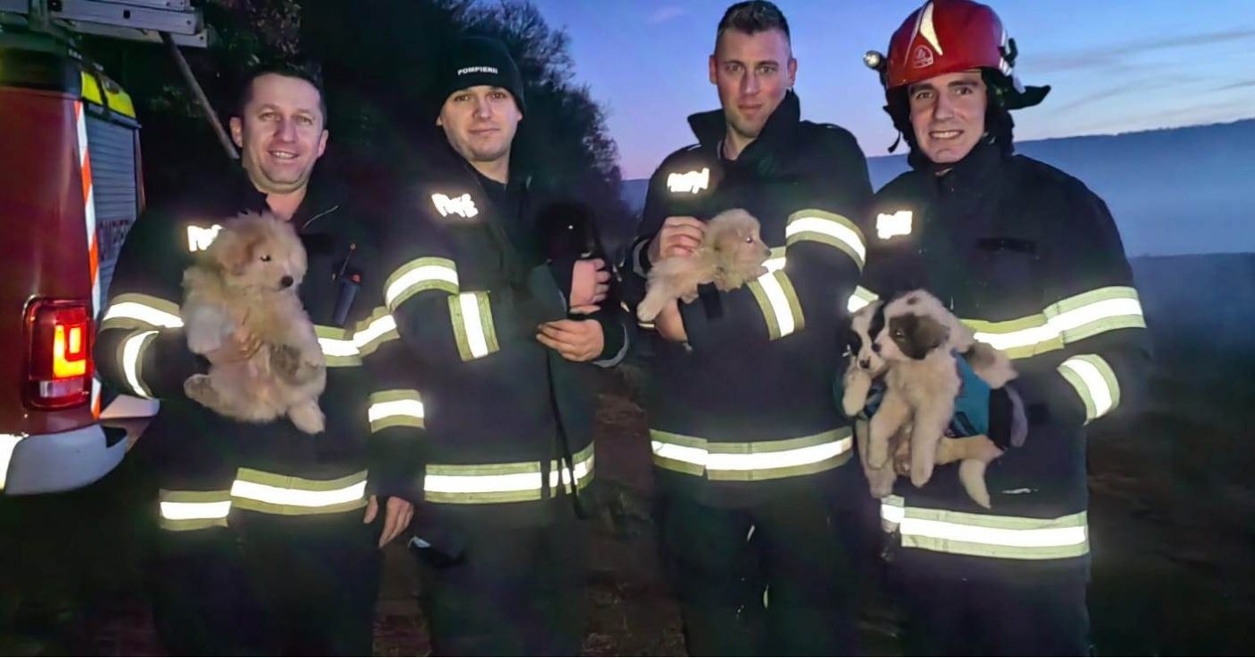 Pompierii de la Detașamentul 1 Cluj-Napoca au salvat cinci cățelusi. Aceștia au fost găsiți întâmplător de o tânără, în timp ce se plimba printr-o pădure de la marginea orașului.