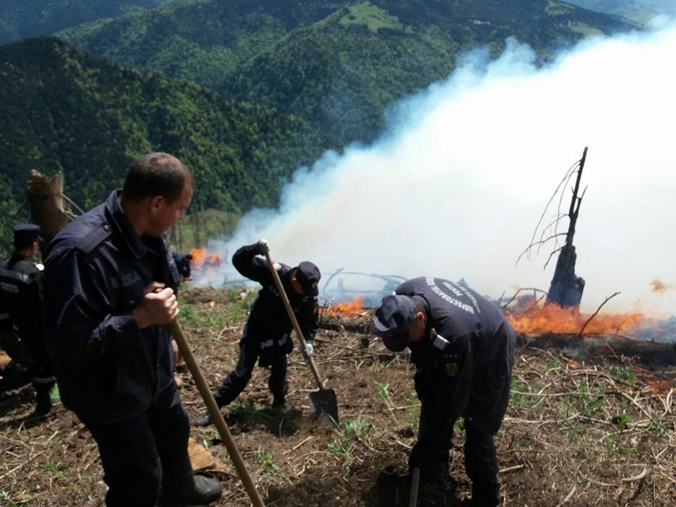 Prima pagină Pompierii militari maramureșeni continuă și astăzi lupta cu flăcările de pe Toroioaga
