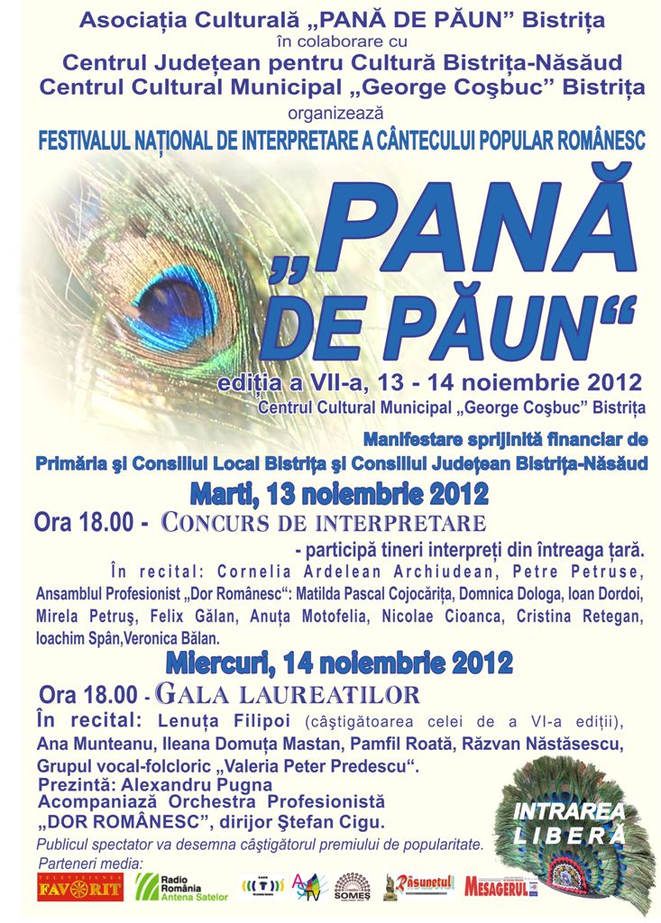 Tânărul solist vocal Lucian Ionuț Chira, colaborator al Ansamblului folcloric „Meseșul” al Centrului de Cultură și Artă al Județului Sălaj, a fost răsplătit cu Premiul Special Ion Conea la recent desfășurata ediție a VIII-a a Festivalului – Concurs Național de Interpretare a Cântecului Popular Românesc „Pană de păun” ce a avut loc la Bistrița în organizarea Centrului Județean pentru Cultură Bistrița – Năsăud, Asociației „Pană de păun” și a Centrului Cultural Municipal „George Coșbuc” Bistrița. Premiul a fost primit de sălăjean pentru „calitățile vocale deosebite și autenticitatea interpretării”.