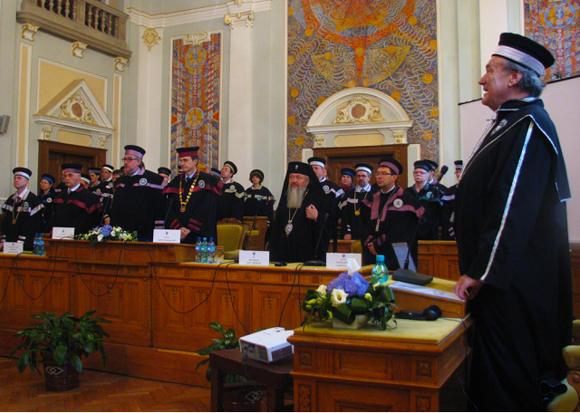 La Facultatea de Teologie Ortodoxă din Cluj-Napoca a debutat astăzi, ieri un Simpozion Internațional pe tema „Credință și Politică. Sfinții Împărați Constantin și Elena-promotori și apărători ai libertății religioase”. Festivitatea de deschidere a Simpozionului a avut loc în Aula Magna a Universității Babeș-Bolyai și a debutat cu ceremonia de decernare a titlului de Doctor Honoris Causa prof. univ. dr. Felix Unger, Președintele Academiei de Științe și Arte din Salzburg. La ceremonie au fost prezenți: ÎPS Părinte Andrei, Arhiepiscopul și Mitropolitul Clujului, PS Petroniu, Episcopul Sălajului, precum și oameni de cultură, profesori și teologi din marile centre teologice din țară și din străinătate. În deschidere, rectorul Universității Babeș-Bolyai, academicianul Ioan Aurel Pop a vorbit despre personalitatea prof. univ. dr. Felix Unger și a precizat totodată unele din realizările Universității pe care o conduce și despre care a declarat că ”în cei 432 de ani a găzduit comunitatea magiștrilor și studenților”.