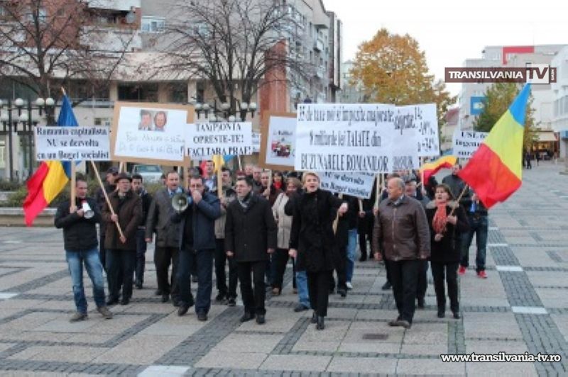 Înarmaţi cu pancarte cu sloganuri împotriva guvernului şi conduşi de deputata de Oaş, Andreea Paul, manifestanţii au parcurs traseul scurt din faţa sediului PD-L până la Palatul Administrativ, unde se aşteptau, poate, să fie primiţi de prefectul Eugeniu Avram, care la ora respectivă era la audienţe în Porumbeşti.