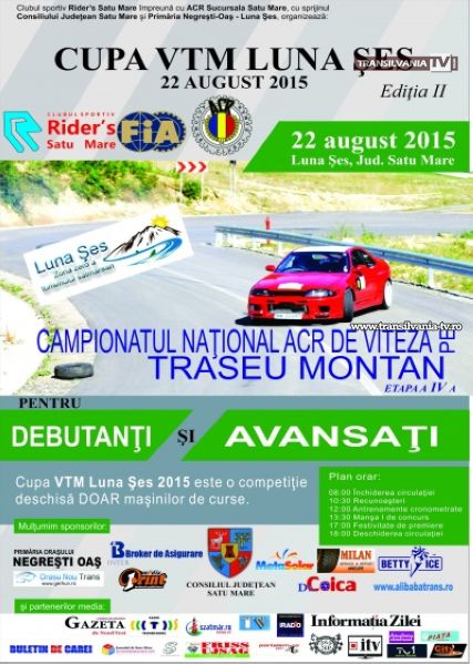Zona de Agrement Luna Şes, de lângă Orașul Negrești-Oaș, jud.Satu Mare, va găzdui sâmbată, 22 august 2015 pentru a doua oară, un Raliu de viteză pe traseu montan (VTM).