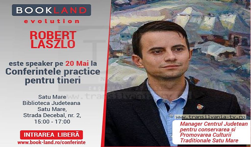 Directorul Centrului Judeţean pentru Conservarea şi Promovarea Culturii Tradiţionale Satu Mare, Robert Laszlo, pe data de 20 mai va fi speaker la Conferinţele practice pentru tineri. Evenimentul va avea loc între orele 15:00 – 17:00 la Biblioteca Judeţeană Satu Mare.