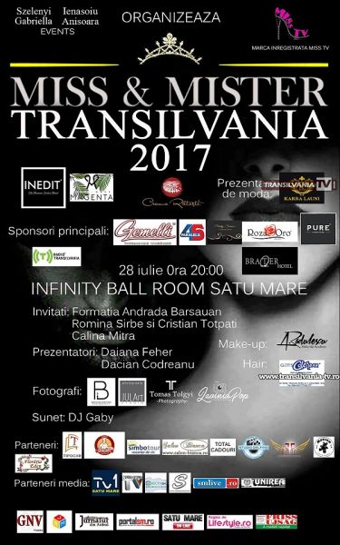 Concursul de frumusete Miss & Mister Transilvania 2017 va avea loc în acest an la Satu Mare, pe data de 28 iulie la Infinity Ballroom de la ora 20:00.